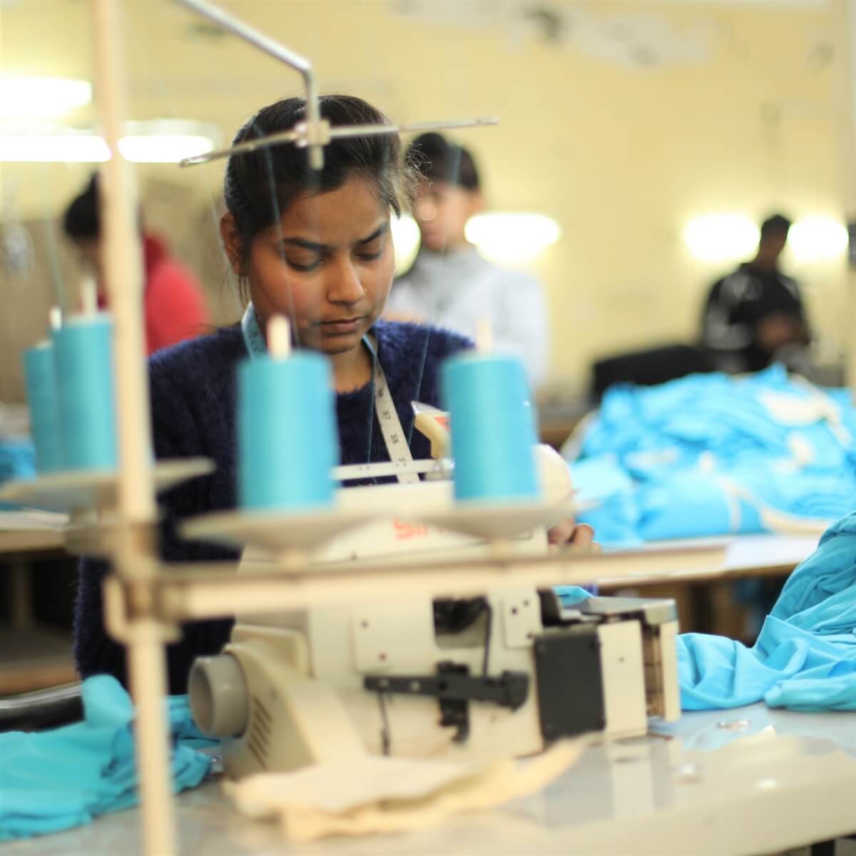 Our partner provides sweatshop-free labor, fair wages, and livelihood benefits for employees. Each of the women earn 3 times the standard wage in India and is guaranteed income security like savings support and their own bank account. This minimizes their financial dependency on often abusive spouses, charity, or exploitative work.