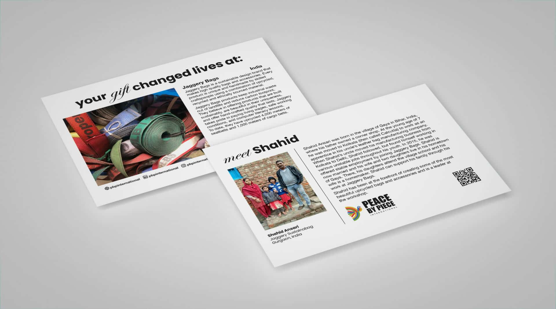 This Peace by Piece partner, Jaggery, is a women-led social enterprise based in Gurgaon, India that converts industrial waste material into a range of upcycled bags and totes. The organization is founded on the principles of sustainability, fair trade, and global citizenry.