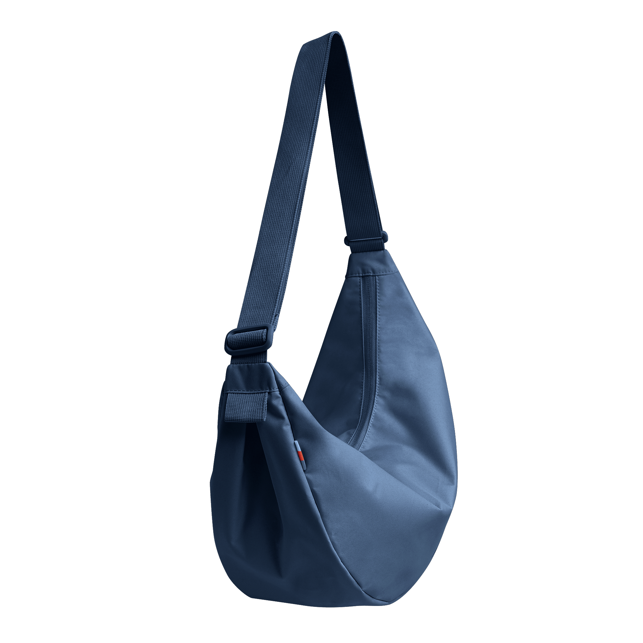 Crafted from water-repellent and recycled Ocean Impact Plastic. This large moon bag merges sustainable style with everyday function. It features two inside pockets for organization and a generously adjustable shoulder strap (24.6″ – 47.2″), making it a versatile and eco-conscious carry-all for the modern professional.