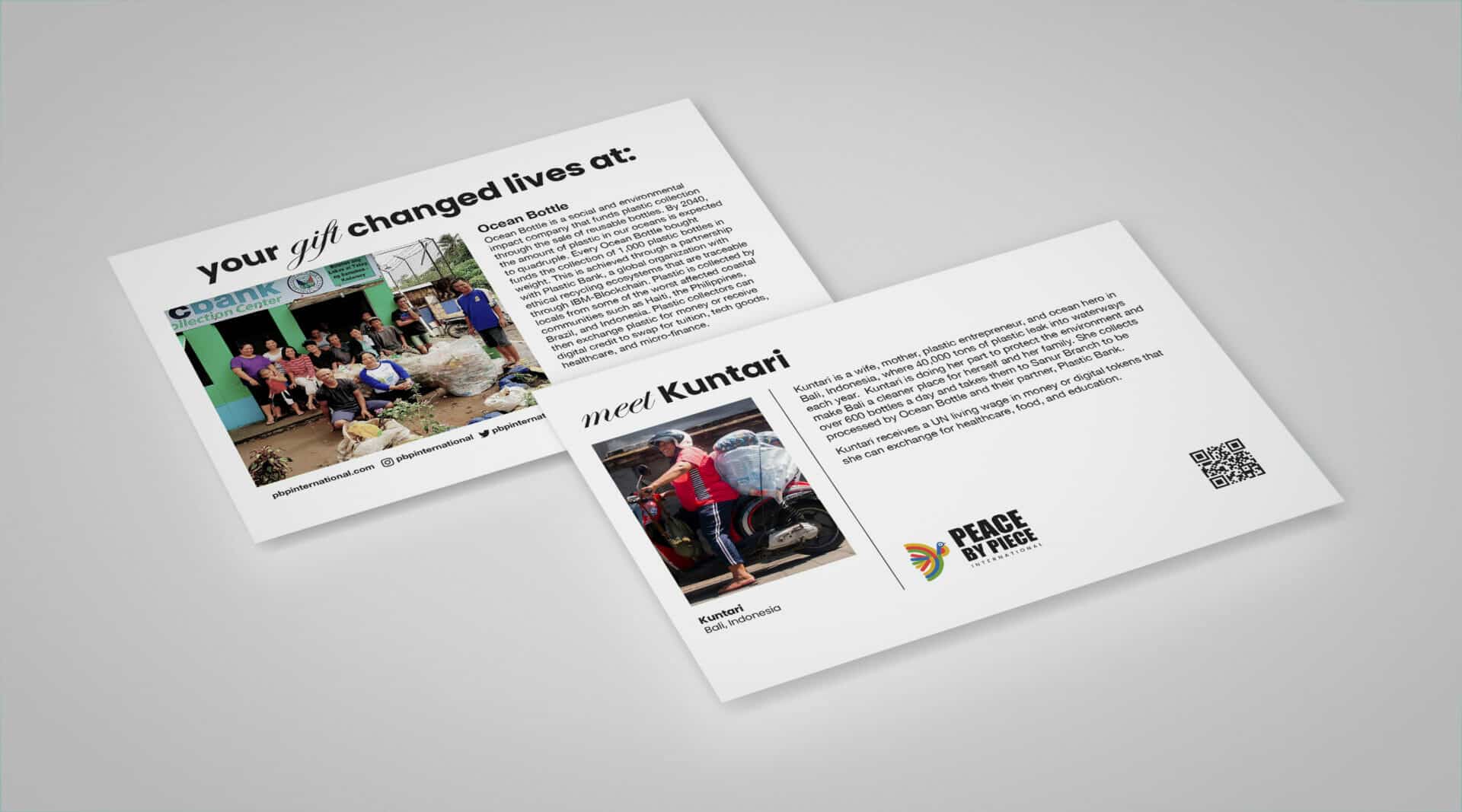 Imagine the collective impact we can make, transforming the concept of one Ocean Bottle funding the collection of 1,000 plastic bottles into a movement where 1,000 Ocean Bottles can fund the collection of 1,000,000 plastic bottles. Every second breath of oxygen we take comes from the ocean, yet we’re filling it with rubbish. By 2050, the plastic in our ocean will outweigh the fish. To avert this crisis, we don’t need a handful of people doing sustainability perfectly; we need millions doing it imperfectly. Small steps like choosing an Ocean Bottle over single-use plastic can make a big impact. Our gifts include an impact card to help communicate the difference your gift has made.