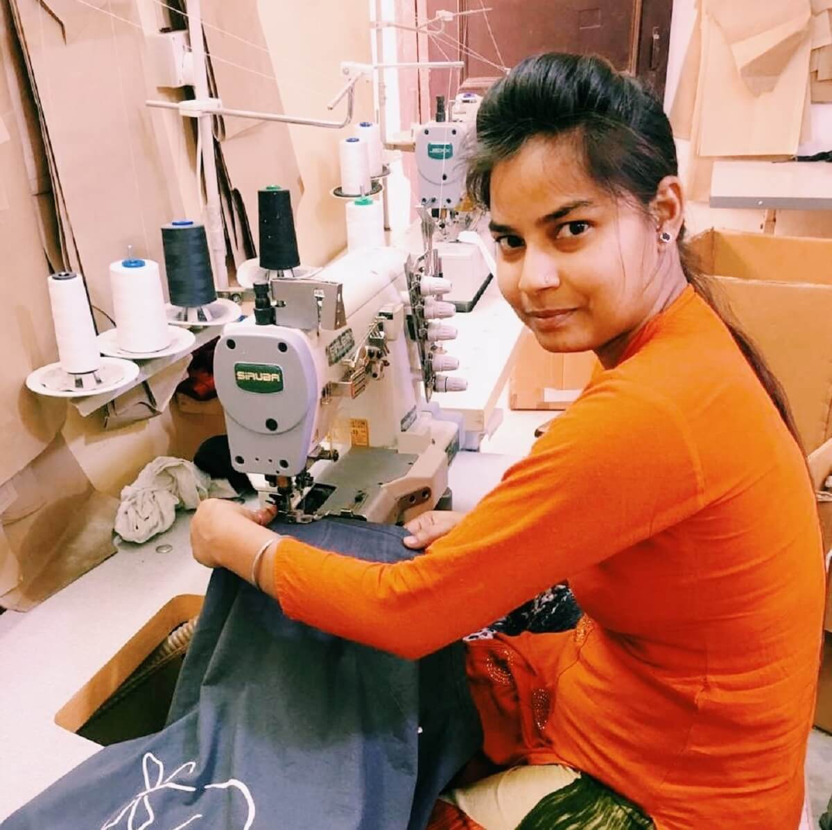 Our partner provides sweatshop-free labor, fair wages, and livelihood benefits for employees. Each of the women earn 3 times the standard wage in India and is guaranteed income security like savings support and their own bank account. This minimizes their financial dependency on often abusive spouses, charity, or exploitative work.